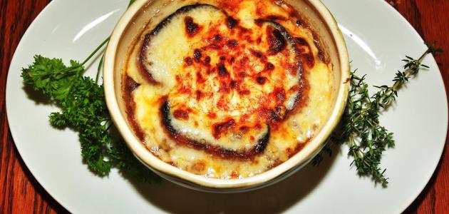 - نضع قدور الشوربة في فرن مسخّن من الأعلى عدّة دقائق حتى تحمرّ الجبنة.